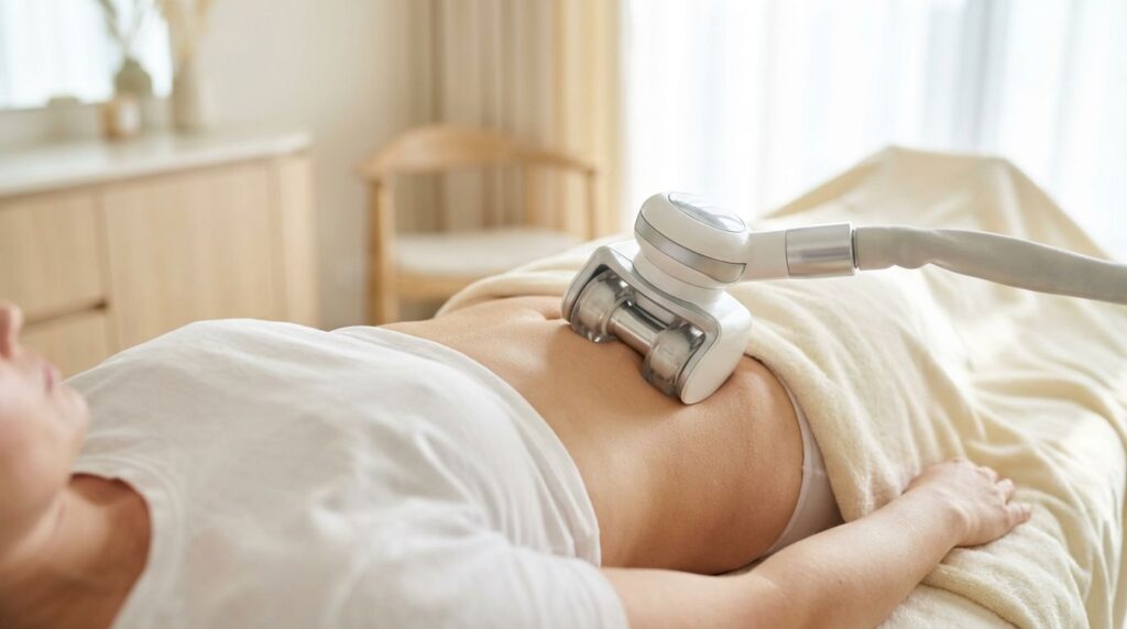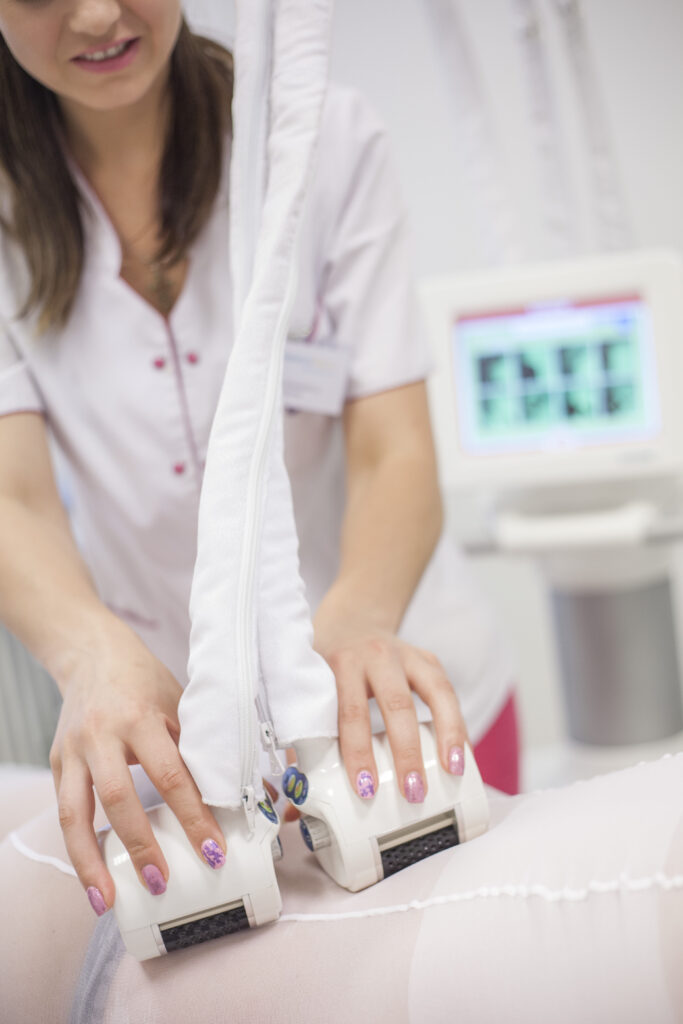 - redukcja miejscowych otłuszczeń („bryczesy”, brzuszek, biodra),