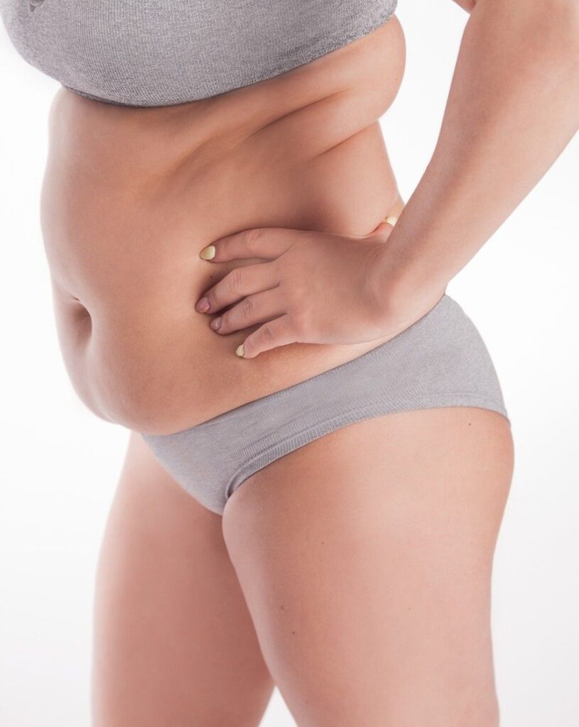 - nadmiar tkanki tłuszczowej – brzuch, biodra, uda, kolana, ramiona, talia
